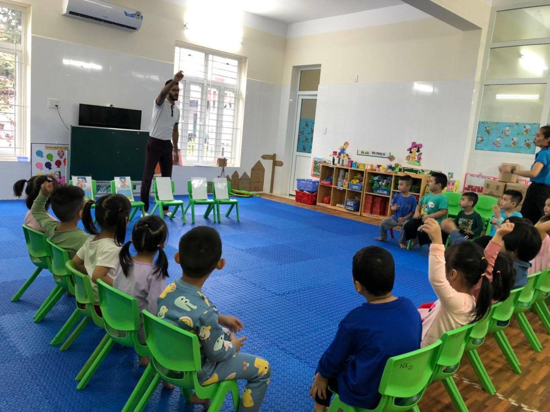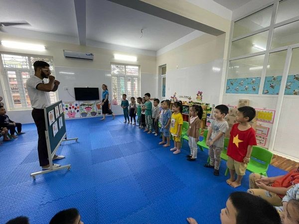 Các nghiên cứu cho thấy trẻ lứa tuổi mầm non bắt đầu có khả năng tiếp thu được một ngoại ngữ mới, song song với tiếng mẹ đẻ... nên cho trẻ học tiếng Anh ngay từ nhỏ sẽ mang đến nhiều lợi ích trong việc hoàn thiện kỹ năng ngôn ngữ, giá trị nhân cách cho trẻ. Nhận thức được tầm quan trọng đó, Trường mầm non Trại Chuối đã phối hợp với Trung tâm Anh ngữ tổ chức mô hình cho trẻ làm quen với tiếng Anh ngay tại trường.