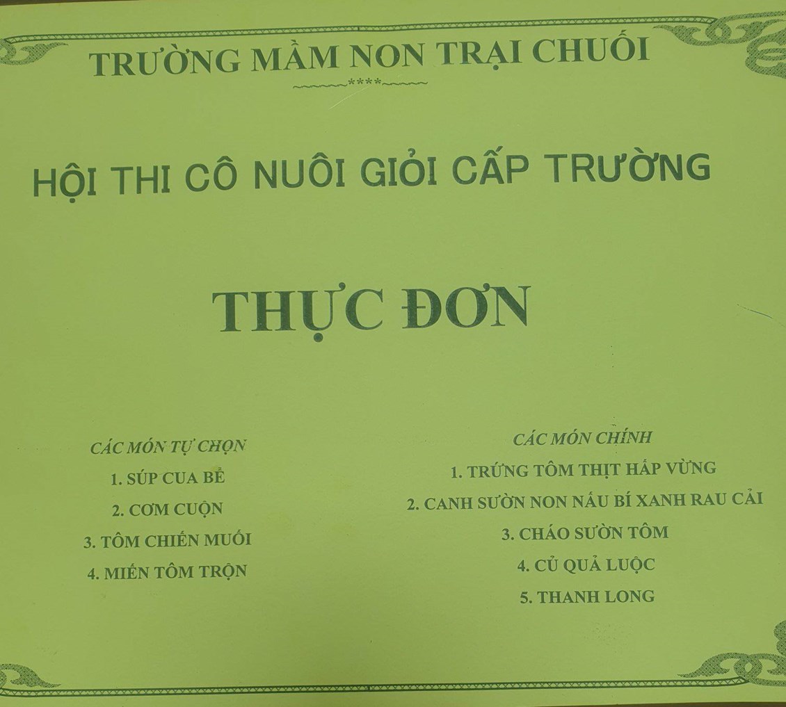 Hội thi Nhân viên nuôi dưỡng giỏi chào mừng ngày nhà giáo Việt Nam 20/11 của trường đã thành công tốt đẹp thể hiện lòng yêu nghề, sự say mê nghiên cứu, tìm tòi và sáng tạo trong cải tiến kỹ thuật chế biến món ăn, nâng cao trình độ tay nghề để ngày càng có nhiều bữa ăn ngon, bổ dưỡng, đảm bảo Vệ sinh, an toàn thực phẩm và phù hợp với trẻ ở từng độ tuổi.