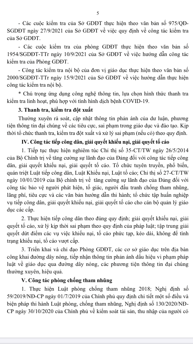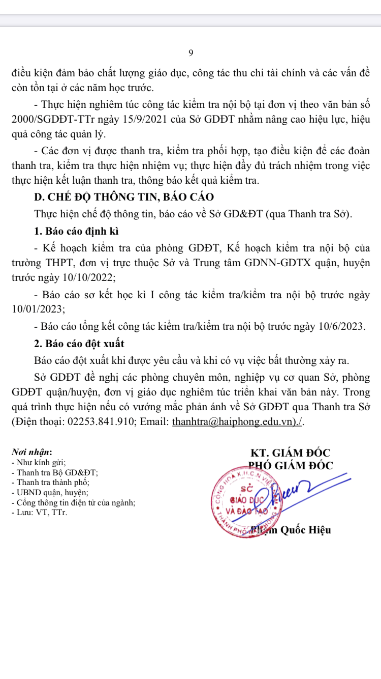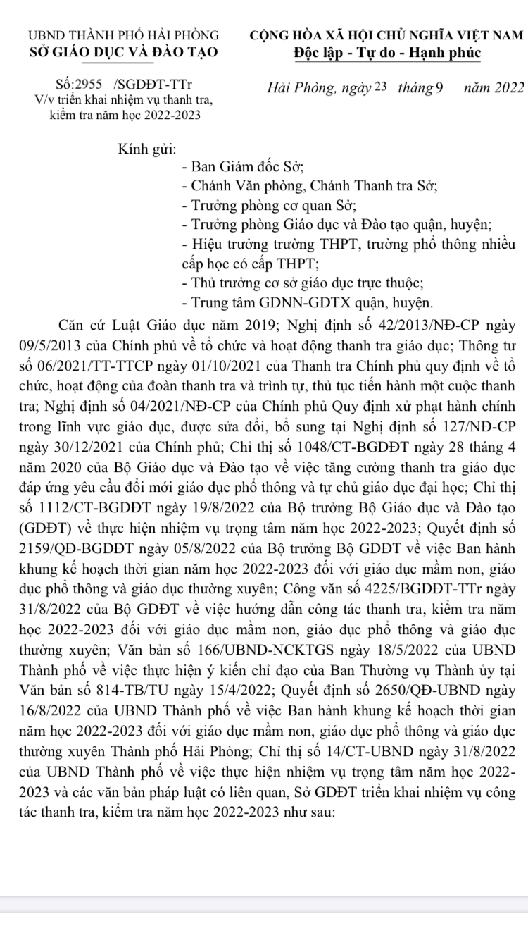 Văn bản số 2955/SGDĐT-TTr ngày 23/9/2022
